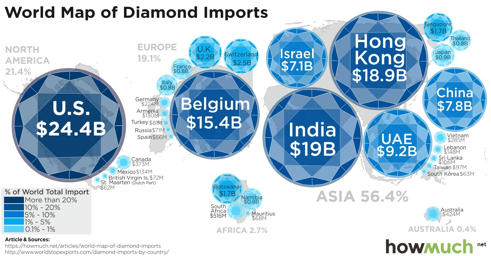 Om de impact van deze dynamiek te begrijpen, is het nuttig om de rol te herinneren die hubs zoals Tel Aviv en Dubai binnen de keten vervullen. Tel Aviv is een van de belangrijkste wereldcentra voor de handel in geslepen diamanten, met een sterke specialisatie in stenen van hoge kwaliteit. Dubai is daarentegen de afgelopen jaren uitgegroeid tot een strategisch knooppunt, zowel voor de handel in ruwe diamanten als voor internationale herverdeling, dankzij zijn geografische ligging en centrale positie in de stromen tussen Afrika, India en Europa.